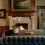 Guests can enjoy a drink in the cosy bar, decorated with a fireplace.